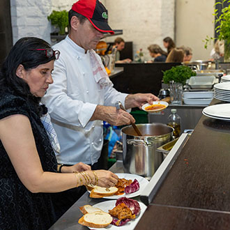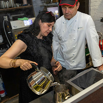 Sie kreiert mit den Köchen und dem Team des inklusiven Kunstcafe’s ein 3 Gang Menü. Es wird eine Internationale Küche serviert, die sich aus den verschiedenen Kulturen der Türkei, Deutschland und Frankreich bedient.