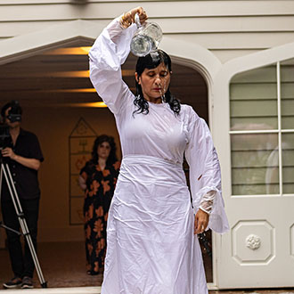 Die international renommierte Performance-Künstlerin Nezaket Ekici hat über 300 bahnbrechende Performances in Museen, Galerien und Biennalen in mehr als 70 Ländern präsentiert. Sie lebt in Berlin und Istanbul und studierte Bildende Kunst und Performancekunst in Deutschland an der Ludwig-Maximilians-Universität und der Akademie der Bildenden Künste München. Durch intensive und aufgabenorientierte Performances erforscht sie den menschlichen Körper als Medium und die tiefere Bedeutung philosophischer und theologischer Grundsätze. Indem sie Energie und Humor mit Momenten des Schmerzes und der körperlichen Ausdauer verbindet, lädt sie die Zuschauer ein, das Wesen der Existenz hautnah zu erleben.