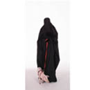 Zweiteilige Fotoedition "My Pig" 2004 Das Rot der Leine als Zeichen eines inszenierten Tabubruchs ist zugleich Ausdruck der ungewöhnlichen Zusammenführung einer streng muslimisch gekleideten Frau mit einem in der islamischen Kultur als unsauber verstandenen Tieres, dem Schwein. Jedoch ist auch das Schwein nur ein unschuldiges Lebewesen wie jedes andere auch und verdient als solches unsere Anerkennung.