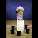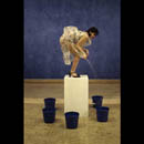 Im Vorfeld der Ausstellung wurde eine Fotoedition zu der Performance Fountain an zwei sehr unterschiedlichen öffentlichen Orten Berlins erstellt. In der Geschäftshauslobby der Königsstadt Terrassen, Berlin Prenzlauerberg und im Sternfoyer der Volksbühne am Rosa Luxemburg Platz, Berlin Mitte. In ihrer achiktektonischen Sprache sind diese Orte sehr gegen-sätzlich: der Eine — klare Linien, rechte Winkel, kühle blau lackierte Wände und Sandsteinfließen. Der Andere — Architektur der Zwanziger Jahre des vergangenen Jahrhunderts, Eleganz und Pomp um das Volk zu erbauen. Es sind gleichzeitig Orte mit kontrastierenden gesellschaftlichen Philosophien: an Einem wird der junge Kapitalismus trotz Krise praktiziert am Anderen hingegen, im Theater des Volkes dient die Reminizienz als Basis der Provokation. Die zwei Fotoserien Fountain 'pomp' und Fountain 'blau' spiegeln die Durchdringung von Ort und Kunst. (Text: A. Breitengraser)