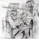 B3: teatime, Format: 100X200, Material: Kohle auf Papier