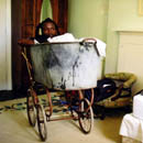 Die Künstlerin zeigt 27 Künstler in einem Kinderwagen, der aus Fundstücken (Blechwanne, Reifen) zusammen gesetzt wurde. Nicht das Endprodukt (Fotos) ist das Kunstwerk, sondern der Weg dahin. Die Foto-Performance ist der Versuch, einen Teil des lebendigen künstlerischen Schaffensprozesses sichtbar werden zu lassen. Die lebendige dialogische Intimität sowie die Kommunikation zwischen dem Ausführenden und den Teilnehmern (Wannensitzer - der selbst zum Kunstwerk wird) schafft eine Art Gesamtkunstwerk. Nur über die Ansicht aller Fotos sowie dem original Objekt im Raum, kann der Betrachter die ursprüngliche Performance nachvollziehen.