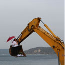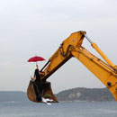 Die Künstlerin Nezaket Ekici lässt sich in ihrer Videoperformance und Photoarbeit von dem Bagger inspirieren, der sich seit einigen Wochen auf dem Gelände der Kultur Akademie Tarabya, Istanbulbefindet. Vor der werden Rohrarbeiten ausgeführt und so kann man des öfteren die Baggerschaufel vor ihrem Fenster beobachten, wie sie hoch und runter fährt und sich förmlich in den Vordergrund drängt. Sie erkennt, dass die Baggerschaufel hoch hinaus geht und den Freien Blick auf den Bosporus und den Himmel ermöglicht. In der Arbeit wird die Baggerschaufel ihr neues zu hause. Zusammen mit einer Pflanze, einem Bettlaken, einem Kissen und einer Lampe sowie einem Regelschirm macht sie es sich in der Schaufel gemütlich. Sie richtet ihren Blick in die Ferne, immer von dem Wunsch getrieben, dem Meer und dem Himmel nahe zu sein. Die Schaufel wird zu einem kleinen Lebensraum, in dem man sich hinlegen kann aber auch hinausschauen kann.