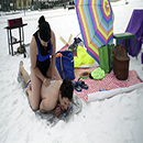Galeria Labirynt | Plaza, Lublin , 01.04.-15.05.2016, produzierten die beiden Künstler eine neue Videoperformance mit dem Namen "Lublin Beach" in Lublin. Die Videoperformance ist als Konfrontation mit einem Extrem konzipiert - die Künstler haben ein "Picknick am Strand", aber im Winter in einer eiskalten Schneelandschaft. Lublin Beach (2016) hat im Gegensatz zu früheren künstlerischen Aktivitäten einen humorvollen Charakter, der gewissermassen einen Ausgleich zur Ernsthaftigkeit des Überlebensversuchs bei ungünstigen Wetterbedingungen bietet. Die Künstler verhalten sich wie Urlauber - sie stellen ihre Liegestühle und einen Sonnenschirm auf, blasen Gummiringe auf, tanzen zu einigen Radiomelodien, haben einen Grill, essen, spielen Tischtennis und legen den Sonnenschutz an... Aus den den Urlaubsrequisiten, der spärlichen Strandbekleidung der Künstler und der Winterlandschaft resultiert eine kognitive Dissonanz und Verwirrung. Ekici und Marcus wollen, dass wir eine Pause von unserem Alltag einlegen und zumindest einen Moment lang unser "Hier und Jetzt" leben, im Bewusstsein des eigenen Körpers, der eigenen Gedanken und Gefühle.