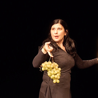 Letztlich ist das Publikum eingeladen, Nahrung jenseits des Ästhetischen zu erfahren. Ja, wir schmecken das säuerlich prickelnde Aroma der Ananas, in die sie beißt, hören die Musik ihrer Trauben, spüren die Äpfel, die sie gegeneinander schlägt – und zugleich erkennen wir die existenzielle Bedeutung dieser Gewächse: Ohne Nahrung kein Leben.
