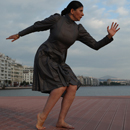 Die Performance „On the way – Safety and Luck“ wurde erstmals in der Güterhalle des ehemaligen Bahnhofs Brmen im Mai 2011 aufgeführt, später wurde die Performance im Hafen von Thessaloniki, im Paralellprogramm der Thessaloniki Biennale im September 2011 gezeigt. In der Performance geht die Künstlerin langsam, umgrenzt von Akteuren/Modellen, die Eimer mit Wasser in den Händen halten. Sie stehen im Zickzack aufgereiht und bilden eine 50 m lange Gasse. Der Weg wirkt wie ein Tunnel und die Akteure sind wie Skulpturen, man könnte sagen, sie Markieren den Weg der Bahn von Ort zu Ort und von Station zu Station. Die Künstlerin schreitet langsam voran und wird von den jeweils nächststehenden Akteuren mit einem frischem Eimer Wasser überschüttet, mal von vorne, mal von der Seite mal von hinten. Sie wird immer wieder aufs Neue durchnässt und hinterlässt auf dem Boden eine Wasserlache: Spuren, die ihren Weg kennzeichnen. Die Wasserlache selbst und die Akteure als Säulen an den „Bahn-Stationen“ werden über die Dauer der Performance zu einer temporären Installation, die den vergänglichen Weg der Künstlerin aufzeichnet. Die Künstlerin bedient sich hier einer Kindheitserinnerung, die auf ein Abschiedsritual zurückgeht, das in der Türkei und in Ihrer Kindheit auch in Deutschland, Duisburg üblich war. Sie kann sich noch gut daran erinnern, das immer dann, wenn türkische Familien mit Sack und Pack und mit ihren vollgepackten Autos auf die Fernreise in die Türkei und zurück fuhren, sich alle türkischen Nachbarn auf der Strasse gesammelt haben, um sich von der Familie zu verabschieden und im Moment der Abfahrt einen Eimer Wasser aufs Auto schütteten. Dieses Ritual sollte Glück und ein sicheres Ankommen am Zielort ermöglichen. Die Künstlerin greift diese Kindheitserinnerung auf und setzt sie in der Premiere in Bezug auf den Ort um, die Güterhalle, die Spuren der Bahnschienen zeigt und in der die Vergangenheit Der Züge noch zu spüren ist. Ein Ort des Durchgangs, ein Ort des Haltens, ein Ort der Reise. Sie selbst ist nun eine Reisende, die sich auf den Weg macht und man wünscht ihr auf ihrem Weg immer wieder Glück und ein sicheres Ankommen.