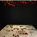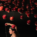 weisse Plattform (2x3 m) , 500 rote Äpfel, nylon Fäden, Kostume, 4 Spot lights