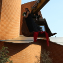 Ekici richtet ihren Blick in die Ferne, immer von dem Wunsch getrieben, dem architektonischen Meer und dem Himmel nahe zu sein. Die Schaufel wird zu einem kleinen Lebensraum, in dem man sich hineinlegen kann, aus dem man aber auch herausschauen kann.