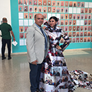 Des Weiteren ist auch ein Kleid aus Satinstoff entstanden, auf dem alle Bilder bedruckt sind. Die Künstlerin trug Kostüm zum Sommerfest  am 22.6.2017 auf der Villa Massimo und lies damit alle Gäste noch einmal virtuell anwesend sein.