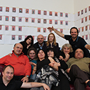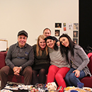 Das rote Sofa im Studio war nicht nur ein Blickfang, sondern auch bequem. Gern saßen die Gäste darauf. Mit einem Selbst-Auslöser hat die Künstlerin sich zusammen mit den Gästen fotografiert. Daraus entstand ein Fotoalbum. ?
