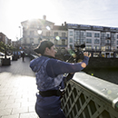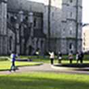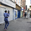 Sie bezieht das Publikum mit ein, indem Sie das Publikum einlädt mit ihr auf dem virtuellen Lauf durch Dublin zu folgen.