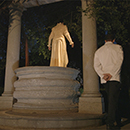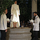 Der leerstehende Brunnen der Villa Massimo ist der Ausgangspunkt der Performance. Sie füllt den leeren Brunnen mit heißen Kaffee  2 Performern (Kellnern) bedienen Sie mit heißen Kaffee, den sie trinkt und helfen ihr im Anschluß in den Brunnen zu steigen.