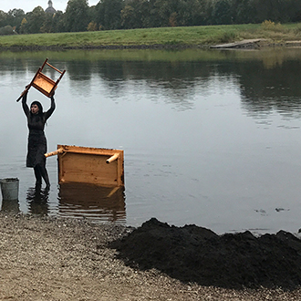 Es entstehen viele Bilder, die verstörerisch und zugleich poetisch erscheinen. Stellvertretend für all Menschen, die hier gelitten haben, erlebt sie die Flut emotional nach. Auch Sie selbst hat Überflutung erlebt, Tsunami 2004.