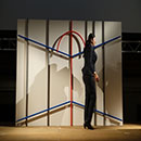 Langsam entwickelt sich ein neues konstruktives „Gemälde“ auf der weißen Fläche, bis sich aus den einzelnen Stäben schließlich eine architektonische Struktur ergibt, die gleichermaßen das Wesen des Original-Gemäldes wiederspiegelt.