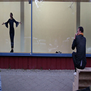 Der leere Galerie-Raum mit seinen 4 großen Schaufenstern und 4 Säulen ist Ort, an dem sie tanzen wird. Nur ein DJ ist neben ihr im Raum, der live Beats einspielen wird. Sie wird den ganzen Raum für sich beanspruchen und bis zur Erschöpfung tanzen. Die Gäste befinden sich vor der Galerie und sehen sie von Außen durch die Schaufester.