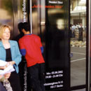 In der zweistündigen Performance wird die Künstlerin zu einem Teil der Eingangstüre des Hauses Niedersachen/Schleswigholstein in Berlin. Die Künstlerin steht in einer Box auf Rädern, die an der Innenseite der Glastüre befestigt ist und schaut duch einen schmalen Schlitz in der ansonsten schwarz beklebten Glastür nach draußen. Der Betrachter erkennt von Außen erst auf den zweiten Blick, dass die Augen in der Glastür die eines echten Menschens sind. "Auf den zweiten Blick" ist mehr als nur eine Tür. Denn was dem Betrachter wie eine einfache Abbildung erscheinen mag, entpuppt sich auf den zweiten Blick als eine Melange aus Technik und Leben: Nicht alles ist unwirklich, was nur so scheint.
