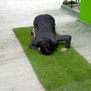 In der Performance "I had a dream" übernimmt die Künstlerin die Aufgabe einer Maschine. Dr Betrachter sieht einen echten Rasen von 1m Breite und 10 m Länge in Form eines Teppichläufers, der vom Innenhof bis zum inneren der Galerie installiert ist. Dort, wo der Rasen endet, sieht er auf einem Sockel zwei Monitore, die übereinander montiert sind. Die Monitore zeigen die zeitgleich stattfindende Performance einerseits als Totale und andererseits als Close-up. Die Performance läuft mehrere Stunden und zeigt die Künstlerin in einem Business Dress, wie sie mit den Zähnen den Rasen mäht und ausgespuckt.