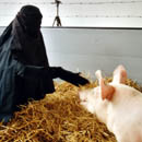 Stall, Futter, Stroh, Stacheldraht, Islamische Kleidung, Schwein