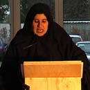 Rednerpult, 6 Stühle,  Soundanlage, Microphone, islamische Kleidung