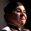 In der Performance verbindet die Künstlerin die unterschiedlichen Charaktere zweier Künstler, von Gustav Klimt und Egon Schiele miteinander. Die beiden Künstler haben nicht nur unterschiedlich gemalt sondern sich auch auf unterschiedliche Gesellschaftsschichten bezogen. Zeitlebens waren Klimt und Schiele Konkurrenten und haben sich dennoch gegenseitig inspiriert. Klimt, einer größten Maler dieser Zeit, malte die Frauen der feinen Gesellschaftschicht. Diese Frauen sind meist in ihren schönen Kleidern und mit feinen Schmuck und ausgeschmückt. Dagegen setzt sich Schiele mit Absicht zur Wehr, indem er vor allem Figuren der Arbeiterschicht und kranke Menschen malt. Die meisten seiner Bilder beschäftigen sich mit dem Thema Leid, Verwüstung, Tod, Sexualität. In der 7 tätigen Performance die täglich 8 Stunden dauert, tanzt die Künstlerin permanent barfuß auf einem Podest an der Wand, um über den Tanz Verknüpfung zwischen Klimt und Schiele entstehen zu lassen. Die Wand, auf dem sich das Regal befindet (Format 2x2 Meter), ist schwarz gestrichen. Es soll wie ein Bild oder Rahmen wirken, in dem performt wird. Ihre Kleidung lehnt sich an die Modelle von Klimt an. Das hier benutzte Kleid ist einem Kleid nachempfunden, das Klimt für seine Frau Emile Flögge entworfen hatte. Es ist ein Gewand mit schwarz-weisem Schachbrettmuster. Die Künstlerin tanzt in extremen Stellungen und voll mit unterschiedlichen Gesichtmimiken, die immer wieder zwei Charaktere erkennen lassen sollen. Während Sie tanzt, macht sie mit ihrem eigenen Körper Musik, benutzt dabei die Füße und den Stoff oder die Wand als sounding board. In unregelmäßigen Abständen friert sie die Bewegung ein und verharrt dann für einige Momente als lebendige Skulptur. Schiele ist ein wunderbares Medium für die Performance, da er in seinen Werken hauptsächlich den menschlichen Körper als Ausdrucksmittel benutzt. Er bezieht sich in seinen Bildern auf Figuren, deren Körperhaltungen und Stellungen. Der Körper ist in der Performance das wichtigste Kriterium für sein künstlerisches Werk.