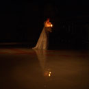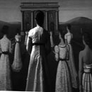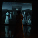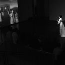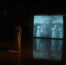 Das Gemälde "Spitzenprozession" Paul Delvaux von 1936 ist ein Bild, das viele Fragen aufwirft. Wer sind diese Frauen, deren Rücken zu sehen ist? Wohin laufen sie? Der Weg ist lang und das Bild wirkt auf den ersten Blick unheimlich und beängstigend. Das Bild enthält viele Rätsel und Unbestimmtheiten. Mit Hilfe von akustischen Mitteln und durch die Performance läßt die Künstlerin diesen Eindruck lebendig werden. Die beängstigende Szenerie des Gemäldes soll teilweise in die Realität umgesetzt werden. So wird das Gemälde im dunklen Raum über einen Beamer großformatig an die Wand projiziert. Mit Absicht wird das Gemälde minimalistisch in s/w abgebildet sein. Des Weiteren ist das Bild verändert: Die Frau im Bildvordergrund ist herausgenommen, so das der gerade Weg zum Triumphbogen frei ist. Indem die Künstlerin in slow motion auf das Bild zuschreitet, wird sie die herausgenommene Person im Bildmittelpunkt bei Ankunft an der Projektion ersetzen. Die Performance wird von der Musik aus Stanly Kubrik´s Film 2001 a space odyssey / Lux Aeterna begleitet. Dieses Stück des Komponisten György Ligetis ist zum größten Teil von Frauenchören dominiert, die unterschwellig zu schreien scheinen und damit eine unheimliche, unendlich weite und beängstigende Atmosphäre schaffen. Die Frauenchöre beziehen sich unmittelbar auf die Frauen im Gemälde. Die Musik (7 Minuten) wird immer wiederholt, so das nicht nur durch das langsame Hinschreiten, sondern auch durch die Musik der lange Weg verdeutlicht wird. Die Bedeutung der Prozession wird so verstärkt. Die ganze Szene soll den Betrachter in die Traumwelt Delvaux´s entführen, in der neben den Frauenansichten die Eisenbahn eine große Bedeutung spielt. Alle 7 Minuten hört man den Klang eines rasenden Zuges, der durch den Raum zu fahren scheint und die Projektion kurz verdunkelt. Die Öllampe welche die Künstlerin trägt, bezieht sich auf die Raumarchtitektur der Kunsthalle Bielefeld. An einer Seitenwand hängt das Gemälde lux mundi, auf dem man 9 Jungfrauen sieht, die mit Öllampen nach links aus dem gedachten Bildrand laufen. Die Künstlerin übernimmt die gedachte Wegstrecke und setzt sie in Realität um. Somit schafft die Künstlerin mehrere Beziehungen zu Paul Delvaux´s Bildern.