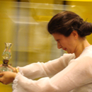 Diese Arbeit bezieht auf die Performance Apeiron, die erstmals in der Kunsthalle Bielefeld aufgeführt wurde. Wie in einer Prozession geht die Künstlerin in mit Spitzen besetzten Kleidung und mit einer Öllampe die ganze Ubahn Station U2 Alexanderplatz in Zeitlupentempo entlang. Sie nutzt die gesamte Fläche der U-bahn, während Sie scheinbar ziellos umhergeht. Es scheint, dass der Weg das Ziel ist. Zeitgleich ist die Musik von Stanly Kubrik, lux aeterna (Odysee 2001) zu hören, in der Frauenchöre in creschendo artiger Weise singen. Diese Musik ist eindringlich und unterstützt die Emotionalität, die die Künstlerin ausstrahlt. Das langsame Laufen widerspricht der Hektik der Ubahn und wirkt durch die Öllampe und das Spitzenkleid paradox.