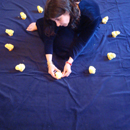Blaues Tuch (3x2 Meter), blaues Kleid, 27 Küken zum Aufziehen