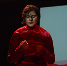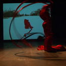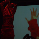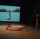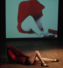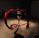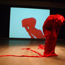 Die Performance "tube" ist in Auseinandersetzung mit dem Gemälde "Anita Berber" von Otto Dix (1925) entstanden. Die Tänzerin Anita Berber war zu Ihrer Zeit sehr bekannt und führte ein schillerndes und extravagantes Leben. Sie kann als ´femme fatale´ im eigentlichen Sinne gelten. Otto Dix hat sie portraitiert und in einem viel zu engen roten kleid dargestellt. In der Performance "tube" zwängt sich die Künstlerin Nezaktet Ekici in einen 5 meter langen engen roten Stofftunnel mit überdimensional langen Armen hinein. Sie versucht sozusagen ein Kleid anzuziehen, dass ihr viel zu eng ist. Während sie sich hineinzwängt, bewegt sie sich tänzerisch. Die Künsterlin zeigt zwei Sezenen. Zum einen ist sie in einer Schneelandschaft auf einer Beamerprojektion zu sehen, wie sie sich den roten Stoff überzieht. Parallel dazu agiert sie auf der Bühne vor der Projektion, wo sie sich in Korrespondenz zur Projektion bewegt. Der Betrachter wird mit zwei Welten konfrontiert, die doch teil einer Welt sind: die scheinbare Welt der Projektion und die reale Welt des live Auftritts.