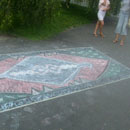 In der Performance Installation „Flying dust“ erschafft sich die Bevölkerung von Lublin selbst den Orient. Eine Parkanlage wird zum kreativen Ort. Mit bunter Kreide entstehen auf dem Boden bunte gezeichnete Orientteppiche. Die ganze Straße, die von West nach Ost verläuft, wird zum Orient. Die Orientteppiche symbolisieren gleichermaßen den Weg nach Osten. Diese mit Kreide gezeichneten Teppiche verfliegen und verblassen mit der Zeit: Der Kreidestaub wird vom Wind abgetragen und fliegt umher. Die Leute laufen auf den Kreidezeichnungen herum und nehmen den Kreidestaub mi in die Stadt Lublin. So verwandelt sich ein kleiner Teil von Lublin auf poetische Weise ebenfalls zum Orient. Die Teppiche werden aber auch zu einer privaten Einrichtung und laden die Leute zum verweilen ein. So mach einer wird durch die heimelige Wirkung der Zeichnungen angestiftet, darin sein öffentliches Wohnzimmer zu sehen. Die einladende schillernde Welt des Orients kommt hier zu Geltung. Jeder Gast bekam ein weißes T-shirt mit den Titel der Arbeit darauf „flying dust“ geschenkt. Die Teilnehmer tragen so den Orient Staub symbolisch auf Ihrem Körper weiter herum und lassen den Orient zu einem Stück Erinnerungskultur der Stadt Lublin werden.