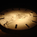 Die Performance “Fluss ohne Ufer” thematisiert das Raum- und Zeitgefühl. In ihrer Performance, die zu der Gruppenausstellung “Ringen” in Berlin entwickelt wurde, ringt die Künstlerin auf plastische Weise mit der “Zeit”. Was ist Zeit, wann beginnt sie und wann endet sie, wo sind die Grenzen? Jeder von uns lebt in seinem eigenen Zeitrahmen. Für einige von uns läuft die Zeit schneller und und für Andere langsamer. Und es heißt, die Zeit ist das Feuer, in dem wir verbrennen. In jedem Fall sind wir in der Zeit und sie führt uns mit jeder Bewegung von dem Moment weg, den wir gerade erleben. Wir sind in einem Fluß der Zeit und ringen vergeblich, ihn anzuhalten. In der Performance, die in einem Kellerraum stattfindet, stellt die Künstlerin einen Uhrzeiger dar, der stehen geblieben ist. Sie liegt eingebettet in einer Uhr aus 100 Litern babycreme still für eine Stunde, immer in der selben Stellung. Der vermoderte Geruch des Kellerraums wird mit zunehmender Zeit durch den Geruch der Crème überlagert. Hier bekommt Zeit auch einen räumlichen Sinn, indem der Duft den Raum erorbert. Zudem werden im Betrachter Kindheitserinnerungen an Babycreme geweckt. Damit führt die Arbeit den Betrachter unbewußt zurück an den Beginn seiner Zeit. Auch wenn die Zeit damit für ihn stehen geblieben scheint, so geht sie doch weiter. Link zu einem kurzen Film