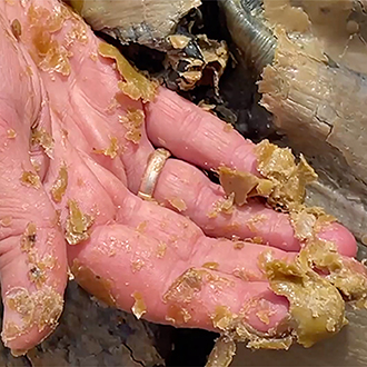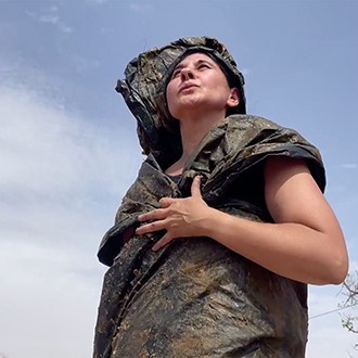 Wax Alive emerges as both an ephemeral performance and a meditation on transience. As Ekici steps into the harsh midday sun wearing the wax-coated plastic costume, the material begins to melt, sag, and reshape itself in real time. The melting is not simply a collapse but a transformation—a return to fluidity, to the fundamental randomness of birth, life, and the universe. To this end, the Jackson Pollock-esque dripped wax highlights the porous boundary between form and formlessness, stability and decay, life and death.