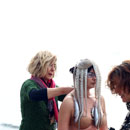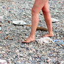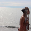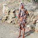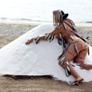 Many fishs are mounted to the body of the artist, from head to toe. Bounded with a fine nylon thread. Its looks on the one hand like a Fisch costume and on the other hand as if she herself is a fish. She wlaks slowly towards a mountain of salt, installed at the sea side
