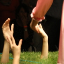 In her performance installation, "Crossing Wonderland", Nezaket Ekici converts a dream into lived reality. The installation features a circular flowerbed not filled with flowers, but with real human arms and hands stretching upwards from a specially constructed round pedestal. Only the arms and hands of the performing assistants are visible, rising like organic sculptures into the air.