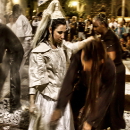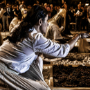 A great mandala that will fall apart during the game to create a new borderless design. The costumes and masks, the dances, the songs and words tell glimpses of life and the cultural differences of the performers. The actions/moves were developed during the workshop held by Maurizio and Nezaket.
