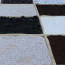 The two finalists will have the privilege of playing the final match with a living chessboard. Nezaket and Maurizio have decided to create a giant chess board (8mx8m) with different materials in white and black. Each of the 64 squares is made of different organic materials such as flour, coffee, pigments, stones, wool, soil etc.