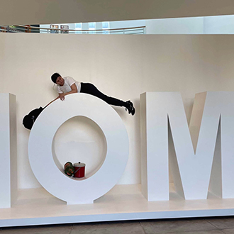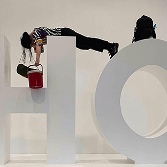 Ekici is a nomadic artist with Turkish roots raised in Germany, and this lived experience of cultural dislocation is presented with existential force in her performance. Her “home” is never singular or permanent. Instead, “Zero Point” captures the condition of someone always searching for grounding—someone who has inherited movement as her native state. The tall letters function less as walls and more as a provisional structure: a temporary scaffolding upon which she may project the idea of a home, symbolizing its necessities and machinations, without ever being able to settle into its comfort. Her body, stretched across the curves of the 'O' or tucked behind the 'E', must be both vulnerable and tenacious; as much as she displays a soul which seeks comfort at ‘home’, she fights to create her own Heimat, here and now.