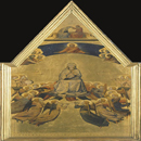 In this performance, Ekici is seen wearing a dark blue and red velvet costume in the room. Bales of straw lay on one side of the room. Around them, stand 7 microphones. Spotlights shine down on them. Pulling one bale of straw after another, each one weighing 15/20kg, into the center of the room, Ekici begins to pile them up. From time to time she goes to the respective microphones and sings a tone or makes noises with her body. Slowly Ekici builds up a pyramid of straw bales, again and again she descends to fetch new straw bales. When all the straw bales are built (forming a pyramid), Ekici reaches the ceiling of the room and looks up towards the sky. The straw shines in the lighting as if it were gold. Called Near Heaven ("Dem Himmel so nah”), Nezaket Ekici’s live performance is inspired by the painting "Die Himmelfahrt Mariae (The asscention of Mary)" by Lippo Memmi (circa 1340, poplar wood 72.5 x 32.5 cm, Alte Pinakothek, Munich).
