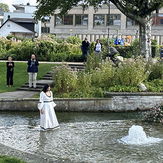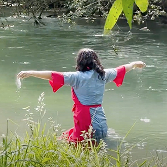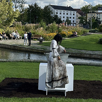 In “Without the old, life is not the new / Ohne das Alte ist das Leben nicht das Neue", Nezaket Ekici explores concepts of origin within spaces that have undergone drastic transformation. The performance, which lasts for 2.5 hours and takes place at the Pader River in Paderborn, Germany, develops as a sequence of ritualistic revivals: washing, extinguishing, milling, dressing and undressing, Ekici revives past ‘life’ as an allegorical blueprint for the contemporary.