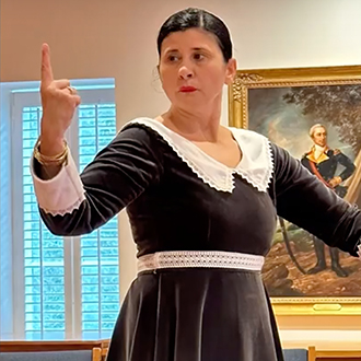 In the final moments, another powerful gesture takes place: Ekici projects the very medieval portraits she had first seen and studied in Schloss Corvey—where “Handgestus” was originally performed—onto the wall of the chapel. The religious iconography from one sacred site is now superimposed onto another, drawing a bridge between German and American soil, between tradition and reinterpretation. The gesture, duplicated, re-sited, becomes a transnational act—suggesting a spiritual conduit that surpasses one’s physical body, and the physical limitations of geography or human will.