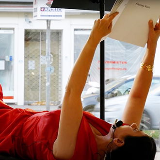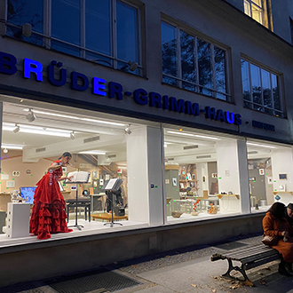 Ekici seeks to express the span of these 20 years both linguistically and visually. One of the large display windows of the Kunstverein Tiergarten is transformed by Ekici into a stage and performance space.