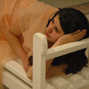 A woman (the artis Nezaket Ekicit) sits in a beautiful dress on a bench and looks at herself on a video-screen. The film on the video-screen, showing exactly the same as what happens before the flat-screen on the bench stands symbolically for a mirror and becomes a kind of a living mirror. In the video the artist sits with her bench in the eastern sea (germany). One sees the artist at same time on the screen as a virtual reality, and as a real person: This makes a dream-like situation. The artist mirrors the latent dream world, representing reality. The variations of reality are mirrored in a flow and shift the perception of the viewer onto another stage. It is, as if the srtist becomes alive on video. The presentation truns out to be absurd after some time of watching it, because the viewer is no longer able to control switching between realtiy and virtual reality. Try not to get lost.
