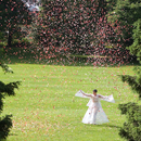 The performance-installation " vortical intoxication " shows the combination of body and nature. The artist is located in a field full of rose petals, distributed by airburst of rose petals, falling down from the sky. The artist is fascinated by the beauty and the fresh scent the rose petals. Driven by the desire to be one with this Beauty, she revolves around her own axis and apparently ignites a vertebrate, the sea of flowers moves in the air. While they are in motion in this vortex of flowers, the flowers stick to her transparent dress, which is prepared with adhesion. She merges with nature. The rotation is similar to the dance of the Dervishes, believing that the main force of the universe is love and to be found in the middle of everything. The artist takes this literally and connects with nature by turning over and over around herself Finding her middle of the univers by rotation constantly.